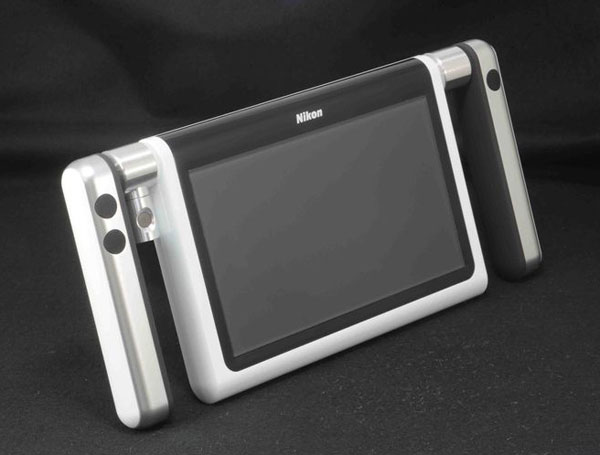 The next is an odd one called Nikon Multi-Ball. It looks like one of those cameras that you sit somewhere at a party and it takes photos all around the place to create a large scene. Exactly what it does or is we don’t know. Nikon Rumors thinks it may be a 3D-panorama camera. There is also a prototype camera with a giant 6-inch screen and handles on each side. It looks really strange to me and presumably would be more like a media player able to show photos and video on a big screen than a camera alone.